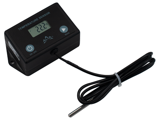The ALTA Digital Temperature Sensor assesses the temperature of whatever environment the probe is in. At the push of a button, temperature readings are displayed on the device’s digital display and sent to iMonnit software through a Monnit gateway(purchased separately), creating an easy-to-read log of current and past readings.