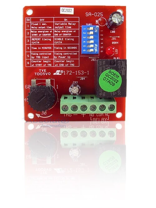 - Relay can also be set to activate for one second at the end of the timing cycle