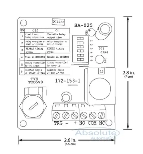 - Relay can be programmed to activate at the start or at the end of the timing cycle
